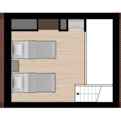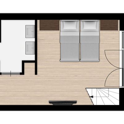 Cette chambre d'hôtel spacieuse peut accueillir 4 personnes. La chambre est meublée d'un lit double. Par l'escalier, vous accédez à la mezzanine ouverte avec un lit double. Il y a un minibar, une bouilloire et une une machine à café à capsules. Vous commencez donc la journée de manière détendue avec une tasse de café ou de thé. Il y a également une télévision, une connexion Wi-Fi gratuite et l'air conditionné. La salle de bains est équipée d'une douche à l'italienne. Il y a également des toilettes séparées. La chambre d'hôtel a une terrasse et une place de parking est réservée pour garer la voiture dans le parking central.Le petit-déjeuner n'est pas inclus d'office. Vous pouvez réserver le petit-déjeuner lors de votre réservation.Cette chambre d'hôtel n'est pas accessible par ascenseur.Bon à savoir : La télévision dispose de fonctions de streaming. Ceci vous permet de visualiser les applications de votre téléphone ou de votre tablette directement sur l'écran du téléviseur. Vous pouvez facilement regarder vos séries préférées avec vos propres comptes.