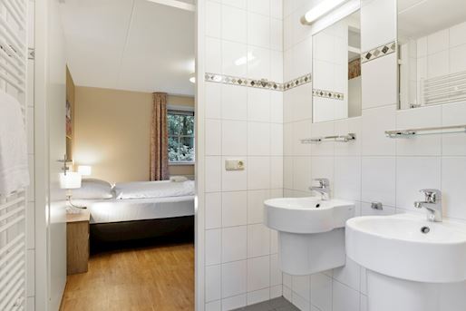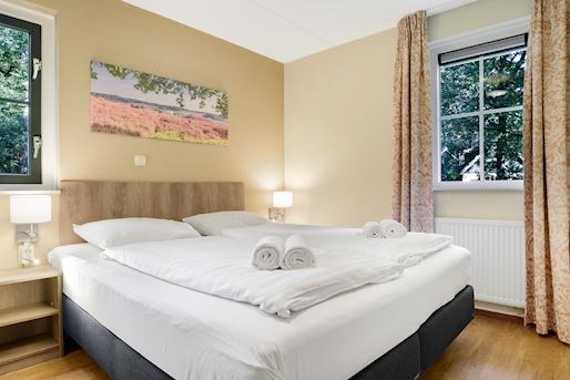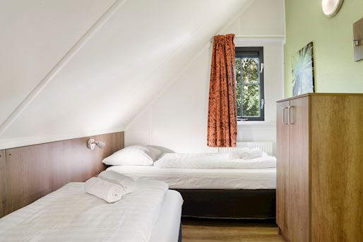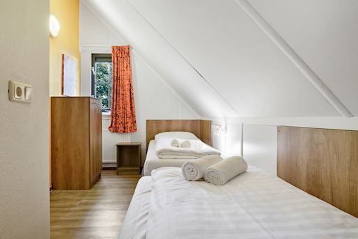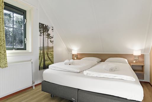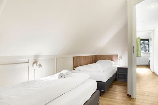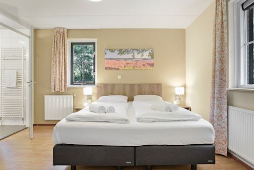 - Chambre à coucher avec deux boxsprings Auping 1 personne, couvre-matelas softtoper pour 2 personnes et tv écran plat