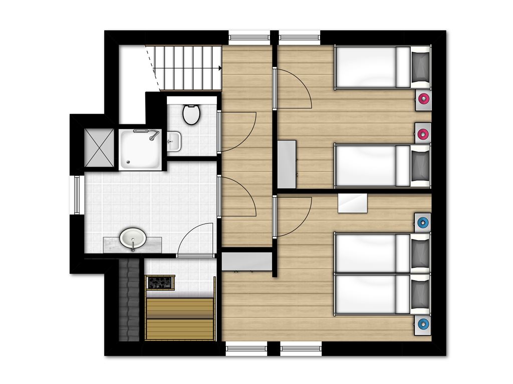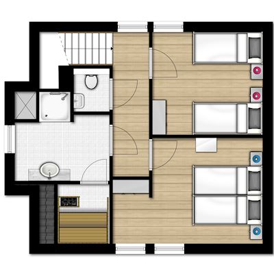 - Deux chambres à coucher avec lit boxspring pour 1 personne au premier étage
