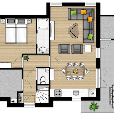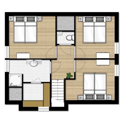 - Chambre à coucher avec deux lits boxspring pour 1 personne au rez-de-chaussée