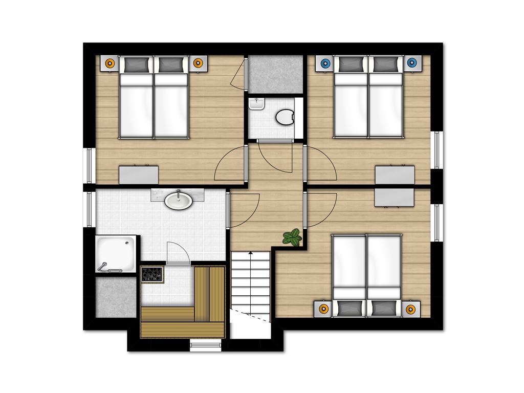 • Chambre à coucher avec deux lits boxspring pour 1 personne au rez-de-chaussée