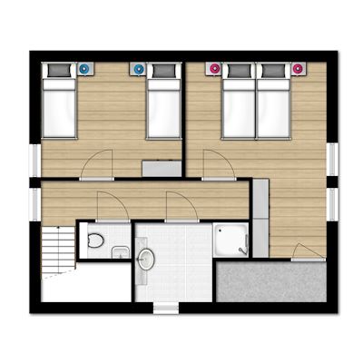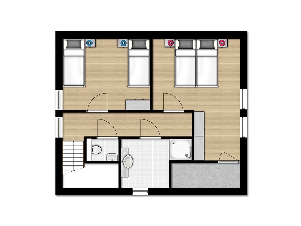- Chambre à coucher avec deux lits boxspring pour 1 personne et téléviseur à écran plat au rez-de-chaussée