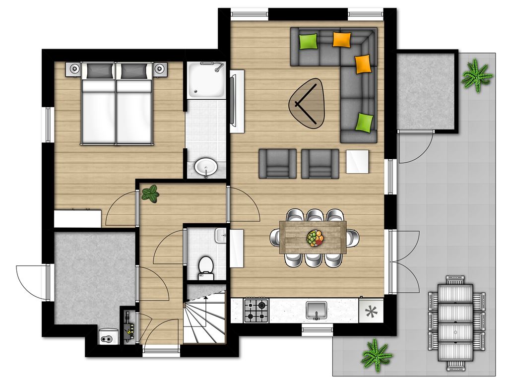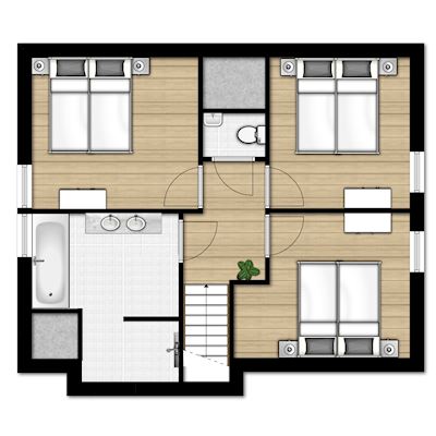 - Chambre à coucher avec deux lits boxspring pour 1 personne au rez-de-chaussée
