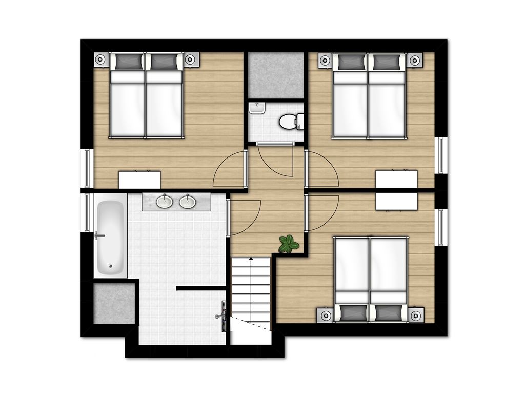 - Salle de bains avec douche à l'italienne, baignoire et double lavabo au premier étage