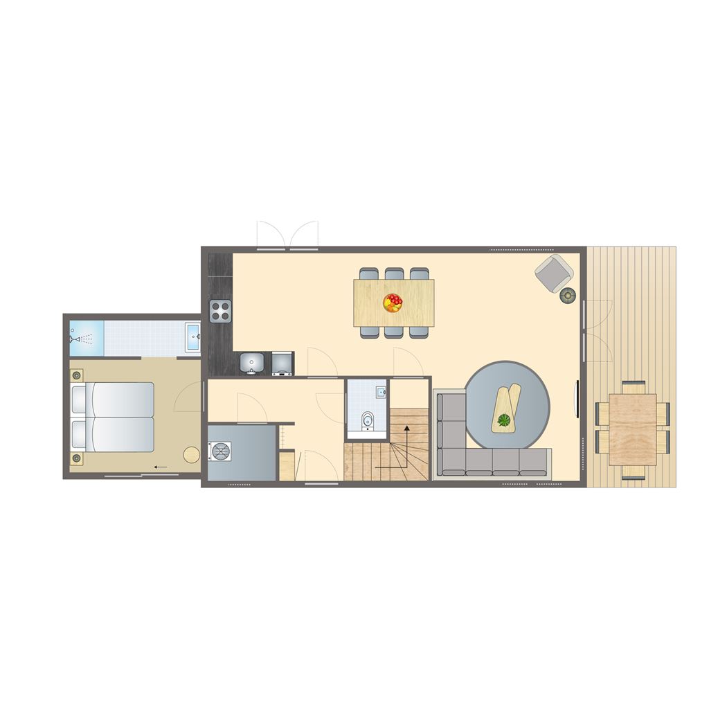 • Chambre à coucher avec lit 2 personnes et couvre-matelas pour 2 personnes softtopper